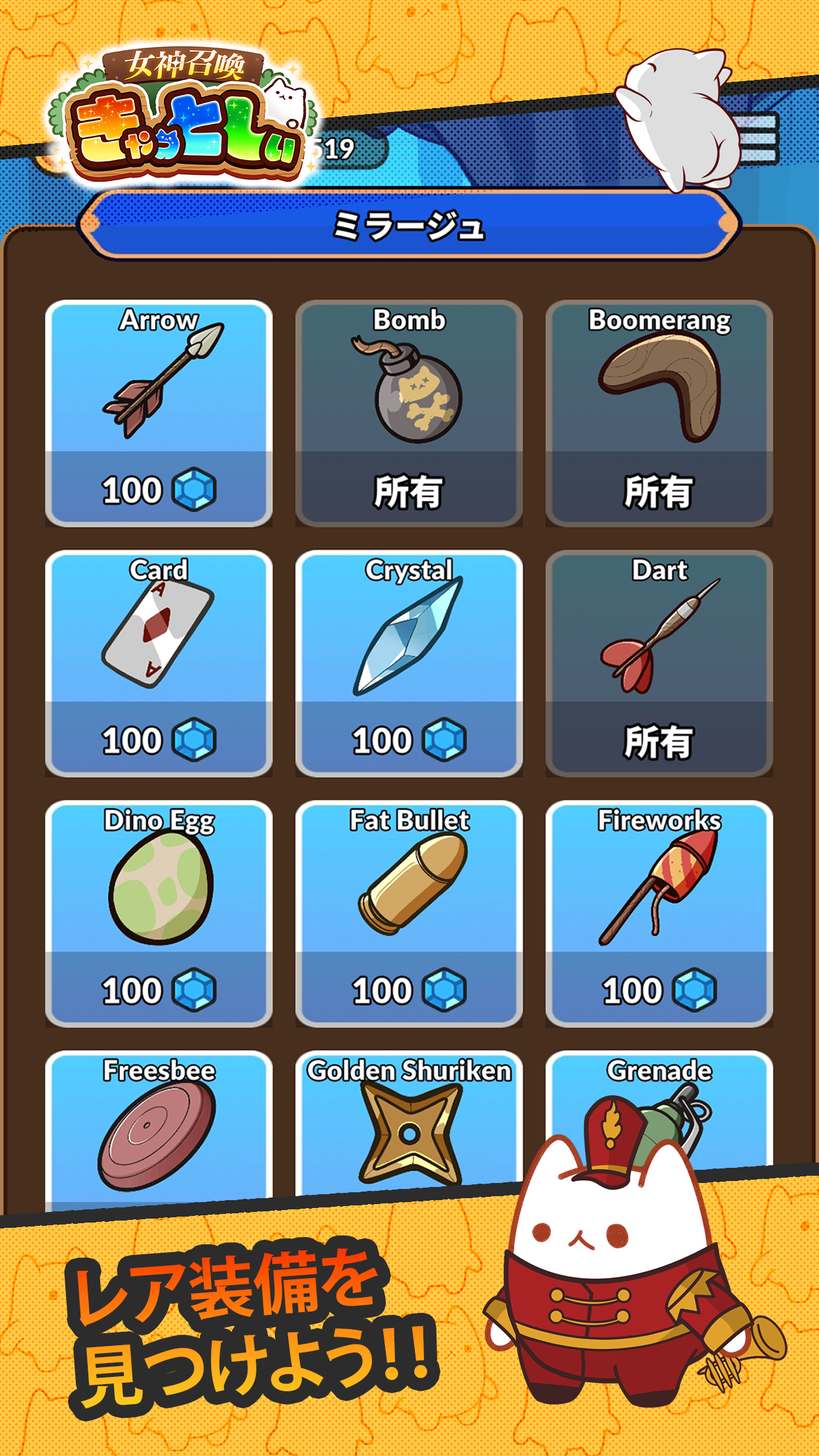 伝説級の装備や魔法アイテムを手に入れて、【きゃっとしぃ】を強化しよう。装備の組み合わせで自分だけのビルドが楽しめる!